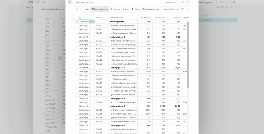 HOAI-Kalkulation im ERP integriert